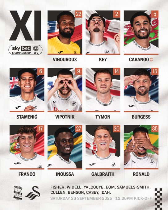 Marko Stamenic makes his return from injury and straight back into the side for the Swans lunchtime clash at Birmingham today.