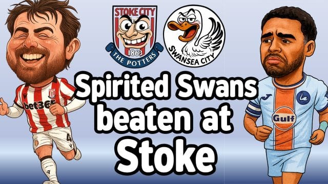 The Swans can take much from this performance and, on the back of two home wins, they almost came back from the Potteries with what would have been a deserved point. In the end though it wasn’t to be but we should not be despondent this afternoon as we produced more than enough to generate that point and, on another afternoon, could easily have had all three of them.