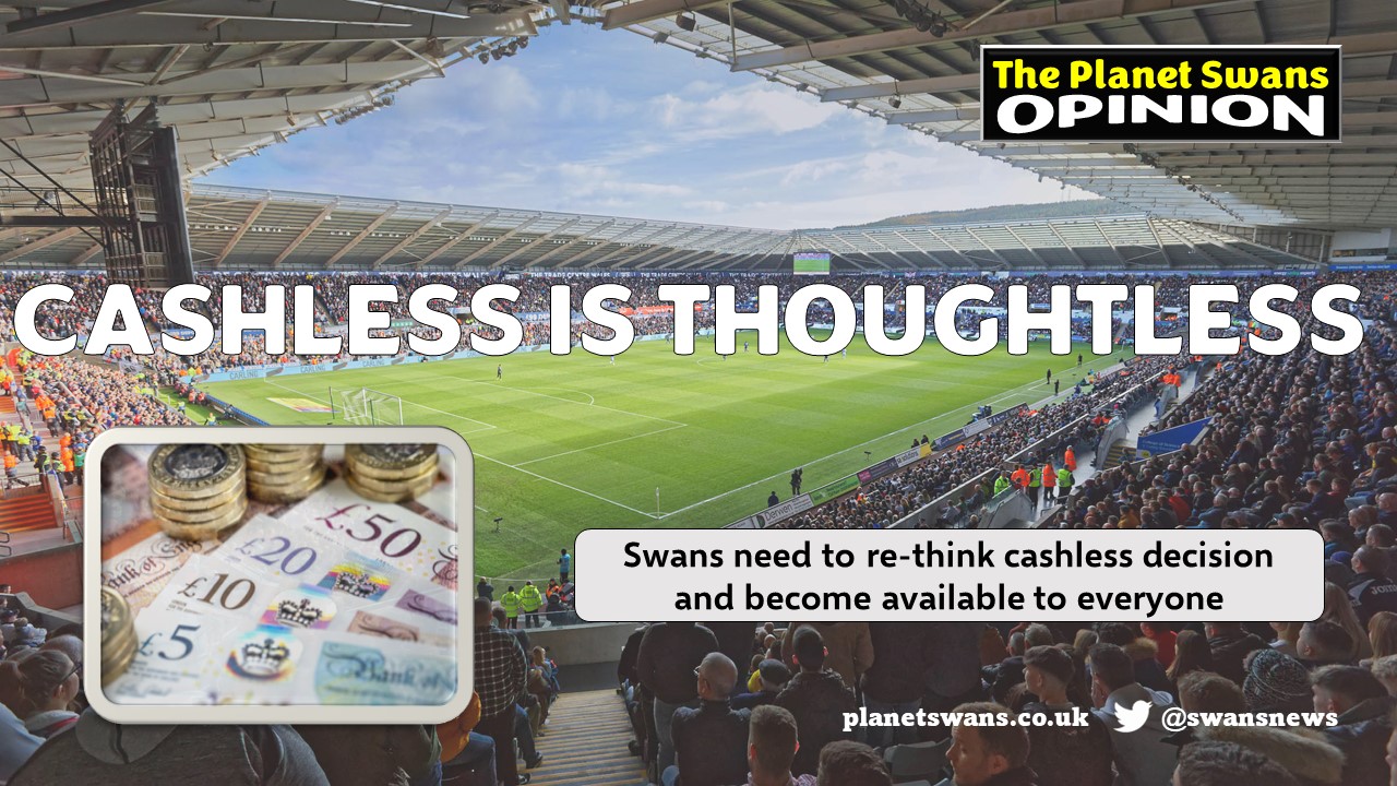 Yesterday’s statement added  “We would like to remind supporters that the club is fully cashless across all its sites and trading outlets, with clear signage on display both in and around the Swansea.com Stadium.