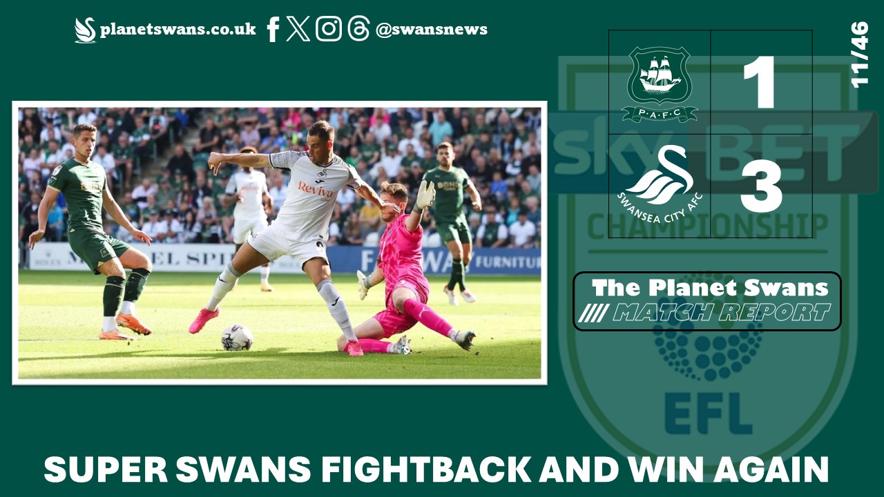 Another thoroughlly enjoyable afternoon for the Swans as they continued their winning ways on the road at Plymouth Argyle. In…
